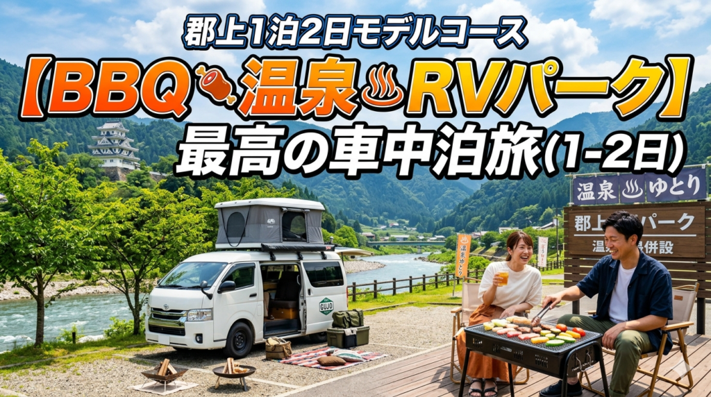 車中泊・旅行検証 【郡上1泊2日モデルコース】BBQ×温泉×RVパークで最高の車中泊旅 郡上で車中泊する方必見。BBQ・温泉・RVパークを楽しめる1泊2日モデルコースを実体験で紹介。初心者でも安心のプラン、サブバッテリー200Ahの検証結果も掲載。 2026.04.17 車中泊・旅行検証