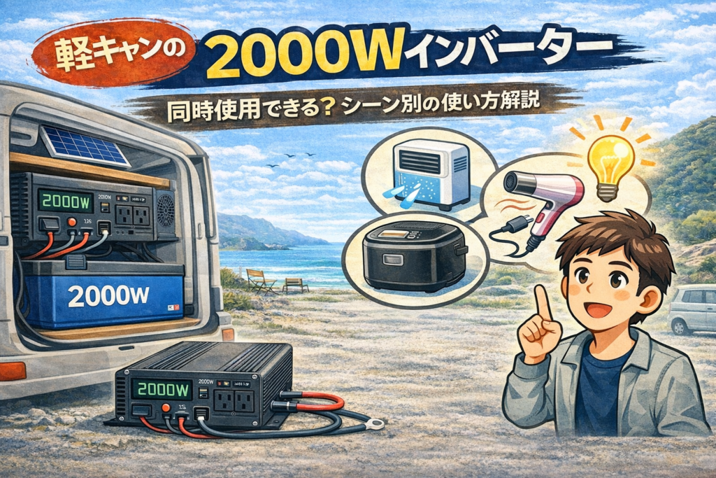 車中泊で1300Wドライヤーは使える?軽キャンでドライヤーを使うためのインバーター容量やサブバッテリー消費電力を解説。車中泊で使いやすいドライヤーの選び方も紹介。