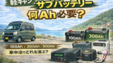 軽キャンピングカーや車中泊仕様の車では、サブバッテリーを搭載して電気を使うことが一般的です。